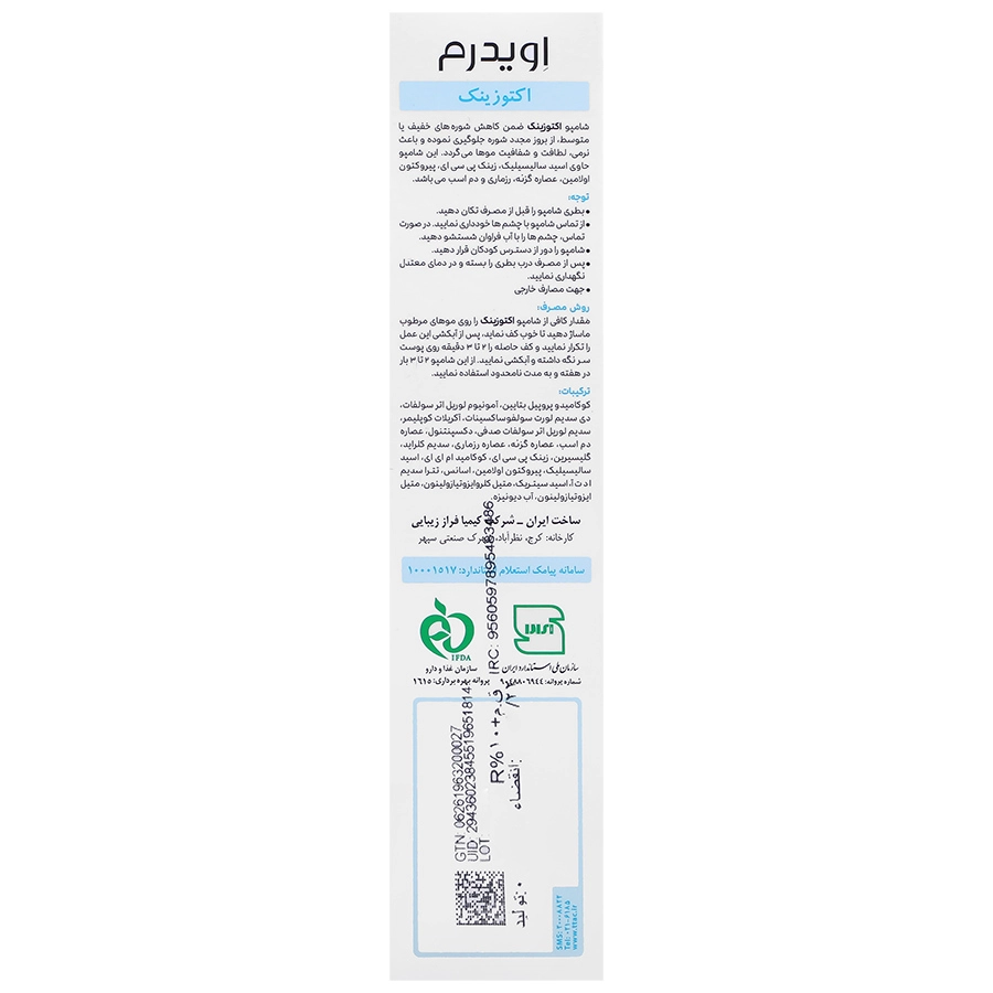 شامپو ضد شوره روزانه اویدرم مدل اکتوزینک 200 میل|قیمت قدیم