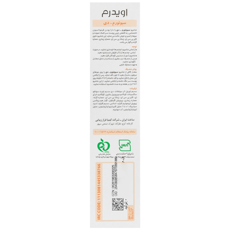 شامپو تعدیل کننده چربی اویدرم مدل سبونورم دی 200 میل|مناسب پوست سر چرب و ساقه خشک