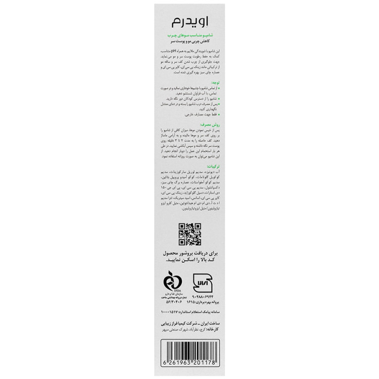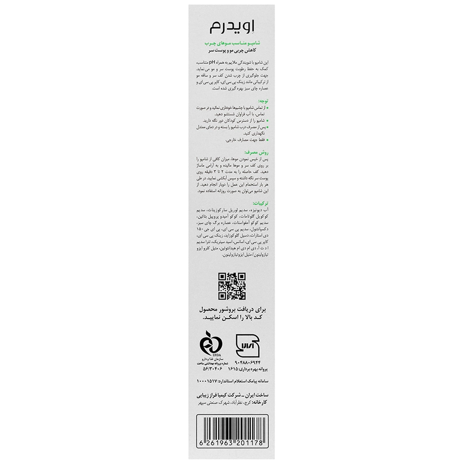 شامپو سولفات فری مناسب موهای چرب فوق ملایم اویدرم 200 میل