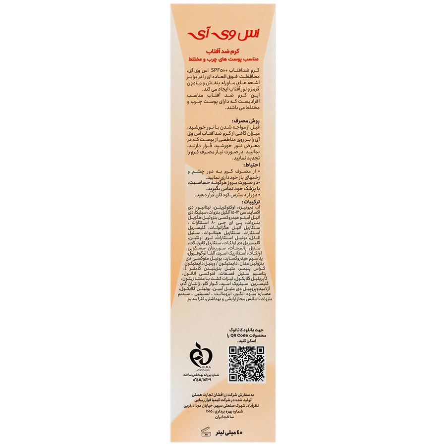 کرم ضد آفتاب بی رنگ اس وی آی مناسب پوست چرب و مختلط 40 میل|Spf50