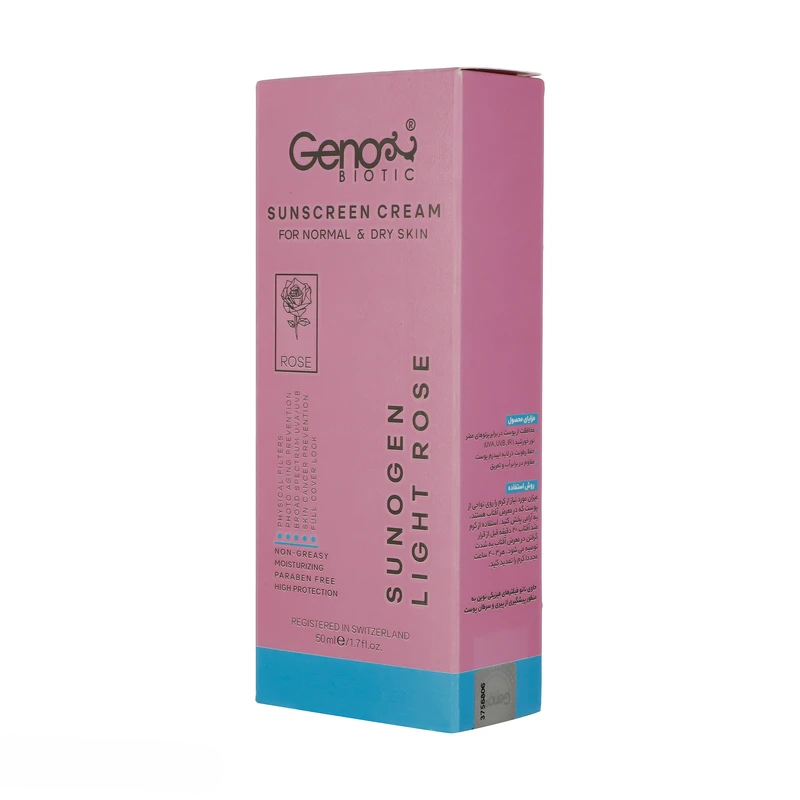 کرم ضد آفتاب ژنوبایوتیک مناسب پوست خشک رنگ رز روشن