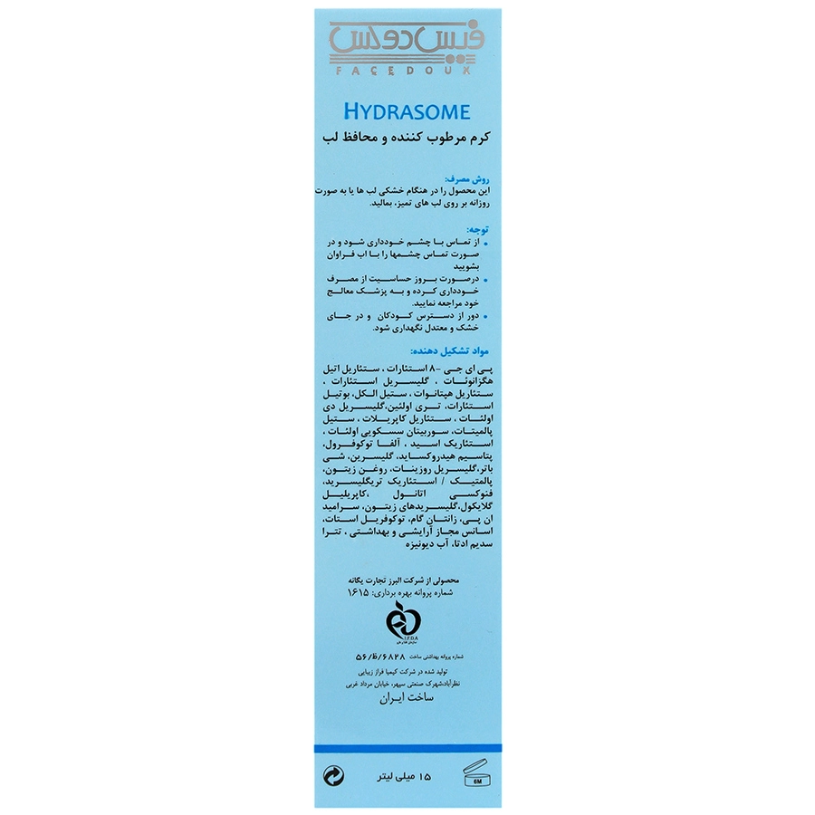 کرم مرطوب کننده لب فیس دوکس مدل هیدرازوم 15 میل