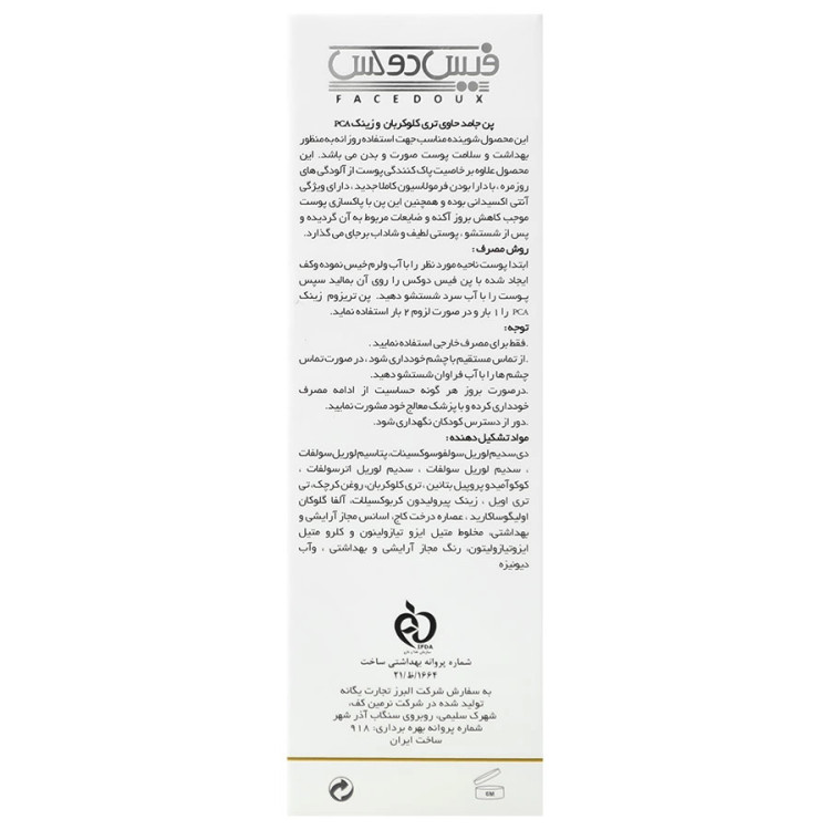 پن آنتی باکتریال فیس دوکس مدل تریوزوم زینک 100 گرم|حاوی زینک و تری کلوکربان